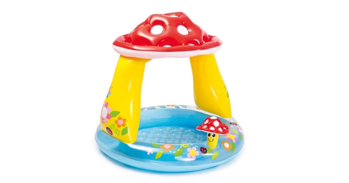 Tökéletes választás a legkisebbeknek a forró nyárra. A vidám, gomba alakú fedél megvédi őket a közvetlen, káros napsugaraktól. A medencéhez felfújható kiegészítő – gomba is tartozik.