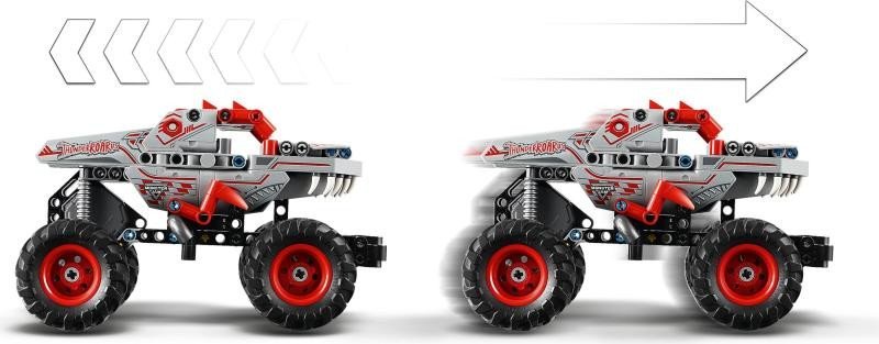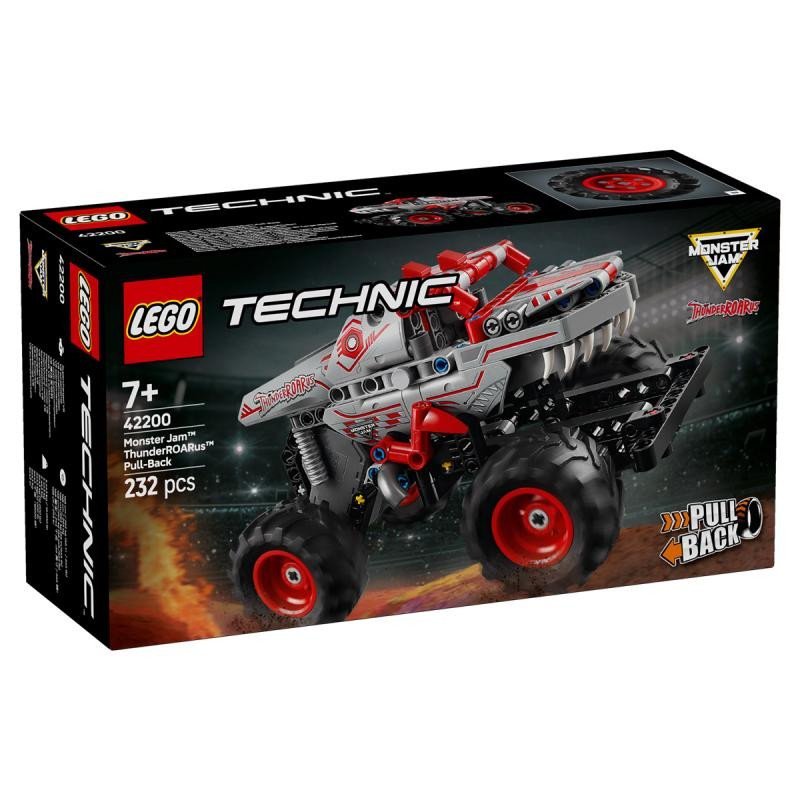 úknak és lányoknak készült LEGO Technic Monster Jam ThunderROARus játék autó (42200) szórakoztató hátrahúzhatós funkcióval van ellátva.