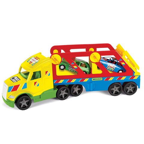 Kisfiad szereti a kamionokat? Lepd meg őt ezzel a különleges kamionnal, mely remek választás lehet számára, hiszen részletes kialakítást kapott, színes kivitelezéssel, mely biztosan elnyeri majd tetszését. A kamion gurulós kerekeket kapott, melyek a játékot még izgalmasabbá teszik majd. A kamion vontatmánya két versenyautó, melyeket egy rámpán keresztül lehet leirányítani a kamionról. A játék sok boldog pillanatot okoz majd gyermekednek, szerezd be hát, és kezdődhet is a móka. Tulajdonságok: