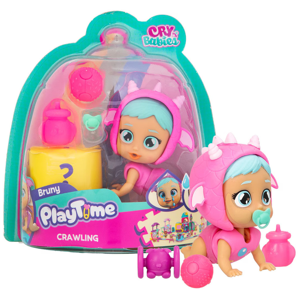 A Cry Babies Playtime - Bruny könnyes mászó baba egy imádnivaló kis figura, amely garantáltan elvarázsolja a gyerekeket. Bruny egyedi, sárkányos sapkát visel, amely játékosságot és fantáziát csempész a mindennapokba. Ez a baba nemcsak aranyos, hanem interaktív is, hiszen valódi könnyeket „sír”, ha szomjas, és imád kúszni-mászni, amit a gyerekek örömmel figyelhetnek.