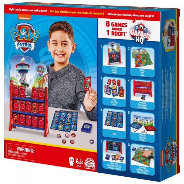 Ez a hatalmas társasjáték gyűjtemény 8 könnyen tanulható, klasszikus játékot tartalmaz a kis Mancs őrjárat rajongóknak! Tartalmaz 3D-s elemeket és olyan jól ismert játékokat, mint a bingó, dáma, memóriakártya, kártyajátékok és sok egyebet.