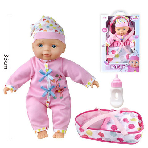 Most egy igazán különleges babát szerezhetsz be gyermekednek, amely biztosan nagyon fog majd neki tetszeni. A baba aranyos kialakítást kapott, pizsamája rózsaszín alapú amin egy színes zsiráf minta valamint kék masni díszítés található. A szett tartozéka a pólya ami nagyon hasznos, hiszen gyermeked bárhova magával viheti ezt a tüneményes csecsemőt, valamint egy cumisüveg, ha véletlenül megszomjazna a játékbaba a hosszú út során. Nagyon jó minőségének és élénk színeinek köszönhetően biztosan nagy élményt fog nyújtani gyermekednek a vele való játék. Tulajdonságok: