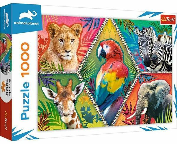 A Trefl puzzle képei csodálatosak akármi is jelenne meg rajtuk, viszont az Animal Planet sorozat teljesen lenyűgöző. Ez az 1000 darabos puzzle kirakása egy kihívás mindenki számára a végeredmény szebb mint elképzeljük. A képen 5 egzotikus állat jelenik meg, amelyeket nagy részben a dzsungelben találunk meg. A Trefl kimagasló minőségű puzzle-jei gyönyörű, színpompás és éles nyomtatásuknak köszönhetően rendkívül részletgazdagon adják vissza az általuk ábrázolt képet. Az egyes puzzle elemek pontosan, precízen illeszkednek egymáshoz és összerakva szép, homogén felületet alkotnak a képek. Tulajdonságok: