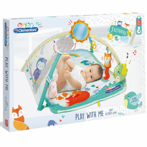 Színes szőnyeg, sok tevékenységgel, amellyel a gyermek játszhat a szülőkkel vagy önállóan. Puha műanyag és szövet medálokkal fejleszti ki a gyermek kézügyességét, látását és hallását A nap tükrözi a mosolyt és az önismeret felismerését A felhő csörgő, amely szimulálja az eső hangját, míg a puha medálok tökéletesen alkalmasak a fogzási időszakra. A szőnyeg és plüss kézzel mosható.