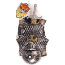 Exkluzív szett a lovagok számára tartalmazza: kard, védőpajzs, sisak, mellény a sisak kerülete kb. 54 cm