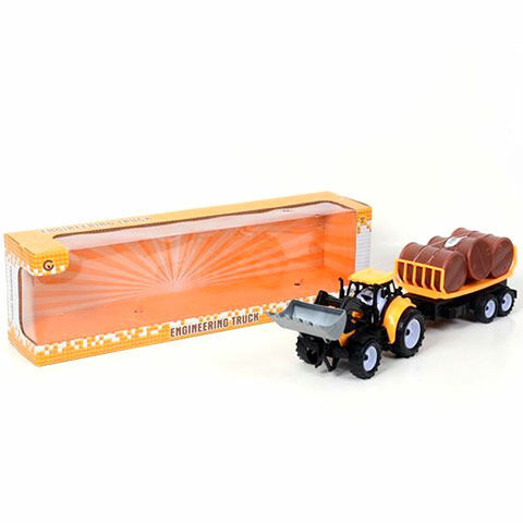 Izgalmas játék veheti kezdetét a munkaterületen ezzel a szuper járgánnyal, melynek elemei azonnal játékra ösztönzik a kicsiket. A jellegzetes sárga színű munkagép egy csatlakoztatható pótkocsival rendelkezik, amin helyet kapott három masszív hordó is. A homlokrakodóval felszerelt munkagépnek a rakodás sem jelenthet gondot, így könnyedén fogja tudni szállítani és mozgatni a rakományt. A kicsik a szobában vagy a homokozóban is bevethetik a szuper járgányt.