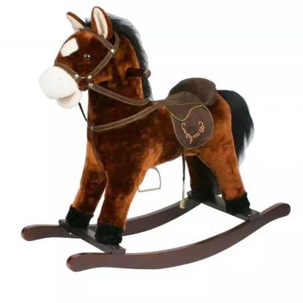 A sötétbarna színű Western Hintaló hanggal és nyereggel a gyerekek nagy kedvence! A hintaló nagyon, puha plüss anyagból készült, sörénye fésülhető, díszes nyereggel, kantárral és kengyellel felszerelt. Ha megnyomod a fülét, akkor a lovak jellegzetes hangját hallhatod. Használata 3 éves kortól ajánlott.