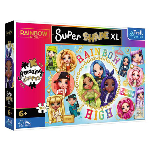 Prémium minőségű, 160 darabos puzzle, amely a népszerű Rainbow High karaktereket ábrázolja. A különböző formájú kirakóselemek tökéletesen illeszkednek egymáshoz. Az elkészült alkotás a szoba díszévé válhat, ugyanakkor szétszedhető majd újra összerakható, így a kirakósok szerelmesei újra és újra örömüket lelhetik az összeillesztésében.