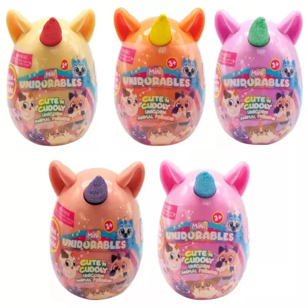 A mini imádnivaló unikornisok alig várják, hogy a gyerekek legjobb alvó- és játszópajtásaivá váljanak. A szuper puha plüssanyagból készült, igényesen kidolgozott, csillogó szarvval rendelkező figurák között boci, egérke, de még kutyus egyszarvú is található. A figurák egy műanyag tojásban csücsülnek, így a boldog egyszarvútulajdonosok számára már a tojás "feltörése" is igazi élmény lesz. És ez még nem minden! A tojásban matricák is rejlenek.