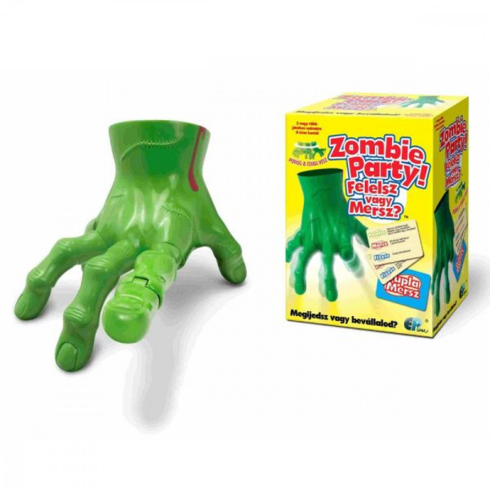 Ebben az izgalmas társasjátékban a mókás és egyben ijesztő Zombie kézé lesz a főszerep! A kéz magától körbejárja az asztalt és véletlenszerűen kiválaszt egy játékost, aki eldöntheti, hogy válaszol-e a "Felelsz" kérdésre, vagy inkább szembenéz a "Mersz" feladattal. Ha a többi játékos úgy dönt, hogy az éppen soron lévő elbukta a kihívást, akkor be kell vállalnia a "Fizess" kihívást. Minden sikeres kör esetén megtarthatjuk az aktuális kártyalapot és ha sikerül 6db-ot összegyűjteni, miénk a győzelem. 2 vagy több játékos részére!
